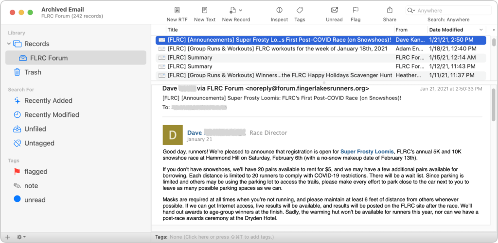 However, there are situations where you might want to archive email, by which we mean download it from the server and store it for posterity on your Mac, possibly outside your email app. Some of those reasons include:
