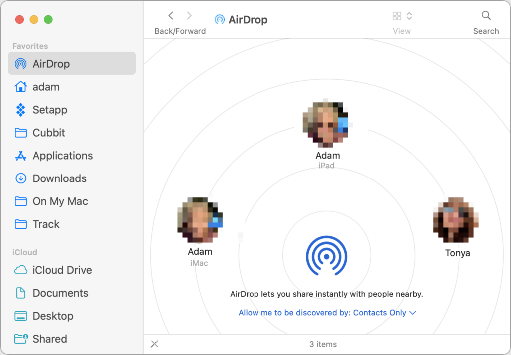 - AirDrop: To copy a file to another Mac in the same room, AirDrop is the most convenient solution. Make sure it’s turned on in Control Center on both Macs and the discovery options are correctly set. Bluetooth and Wi-Fi must be on, but the Macs don’t need to be connected to any network or to iCloud. To transfer a file, select AirDrop in a Finder window sidebar (enable it in Finder > Settings > Sidebar if necessary) and drop the file on the icon for the other Mac. Or Control-click the file, choose Share, click AirDrop, and select the desired Mac. AirDrop has no file size limits, but it’s not the fastest approach and might have issues with multi-gigabyte files or older Macs. Received files appear in the Downloads folder.