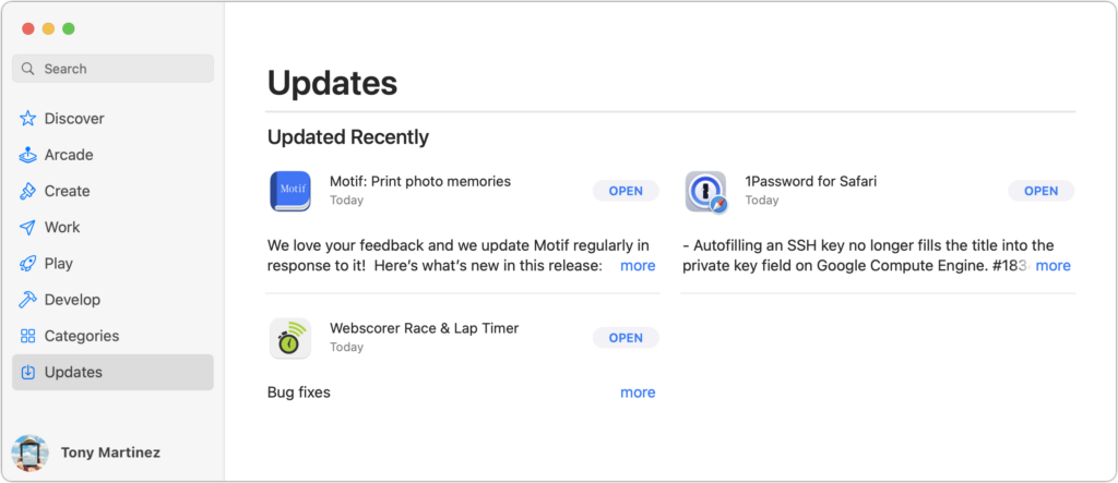 - Update apps: Make sure all your apps are as up-to-date as possible. If you regularly put off updates, now’s the time to let them complete so you have Ventura-compatible versions.