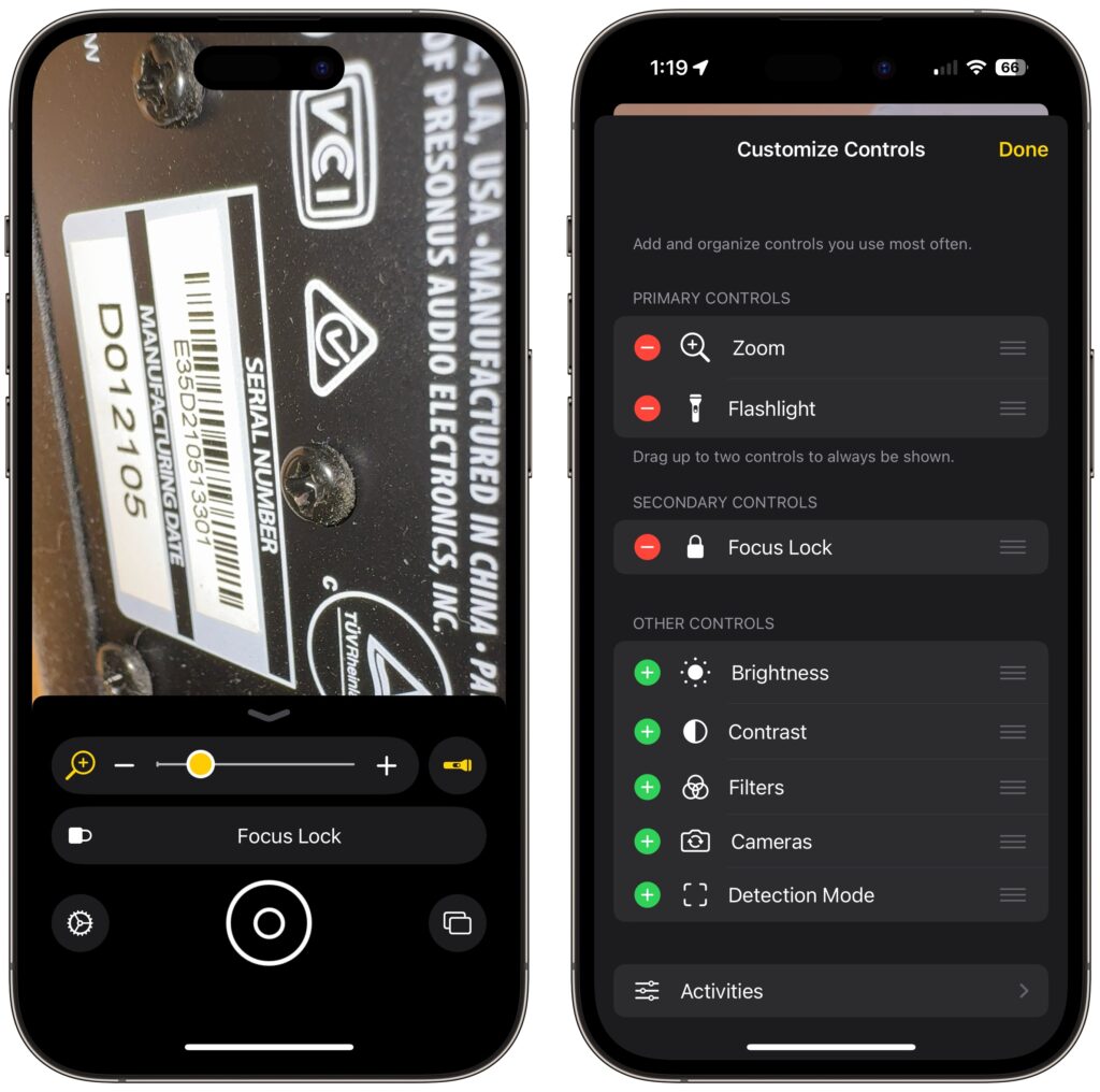Trying to make out a tiny serial number or some fine print you can barely read can be frustrating. Years ago, Apple added a magnifier mode to its accessibility options and turned the feature into a standalone app in iOS 14. You can find the Magnifier app in the Utilities folder in your App Library (swipe left on the Home Screen until you get there), open it by voice (“Hey Siri, open Magnifier.”), and add it to Control Center (Settings > Control Center). Its special camera viewfinder is zoomed automatically, but you can change the zoom level with the slider and tap the flashlight icon to add illumination—more controls can be added by tapping the gear icon. Tap the round shutter button to freeze the image (tap it again to resume). Double-tap the viewfinder to hide all the controls, and double-tap again to bring them back.