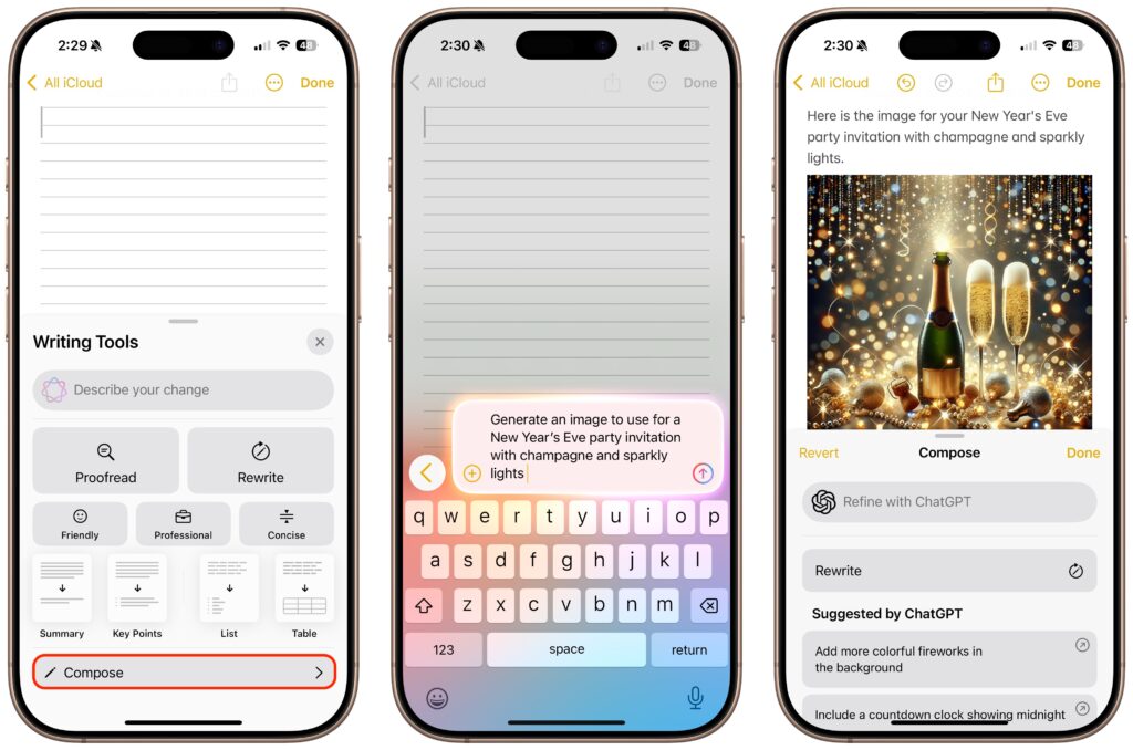 The final place ChatGPT appears in Apple Intelligence is in Writing Tools, which may be more useful than its Siri integration. The new Compose option leverages ChatGPT to generate content wherever you’re writing, and you can also use it to create images using ChatGPT’s image-generation capabilities. Writing Tools also now allows users to request their own changes to selected text (including recasting it as a haiku, for example) instead of relying solely on the canned options to make the text friendlier, more professional, or more concise.