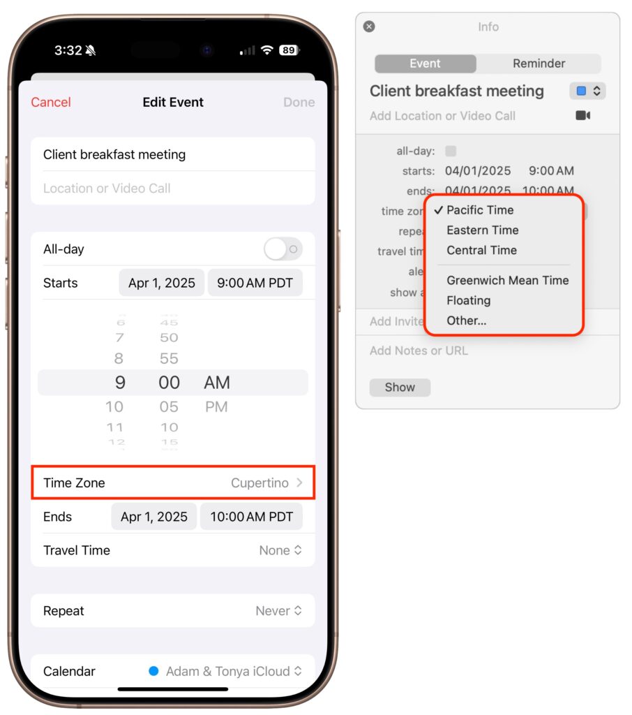 Although we’ve focused on Calendar on the iPhone, iPad, and Mac here, the same concepts—except for the floating time zone—apply to other apps like Microsoft Outlook and Google Calendar. By keeping these time zone concepts in mind, you can avoid calendar confusion and ensure that you don’t miss important meetings, regardless of where in the world you find yourself.