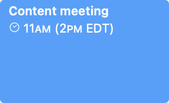 When an event’s time zone differs from your device’s current time zone or the time zone override setting, Calendar will indicate the discrepancy. For example, an event at 2 PM Eastern Time event viewed on a device set to Pacific Time will display as 11 AM, with the original time zone noted in parentheses.